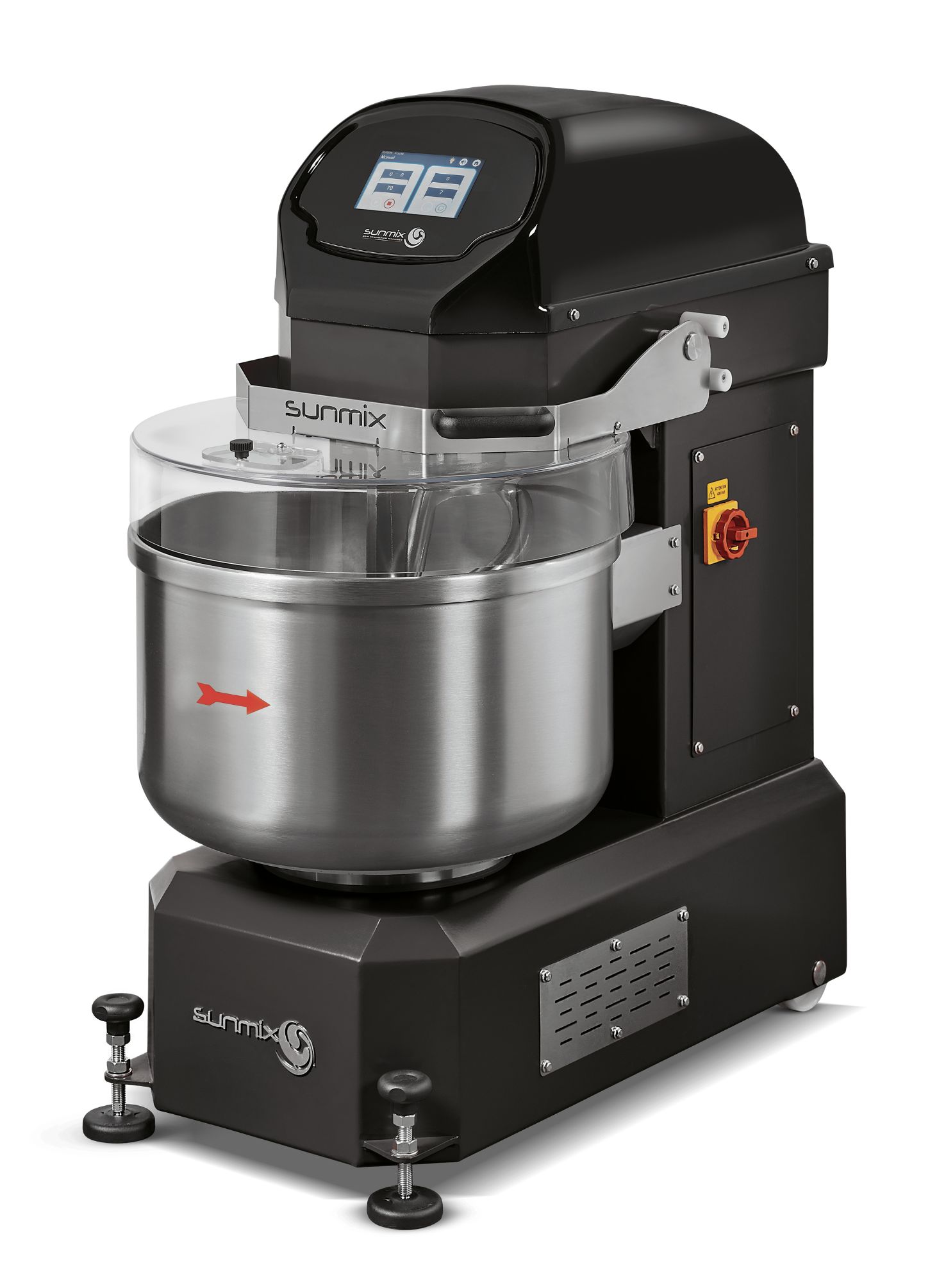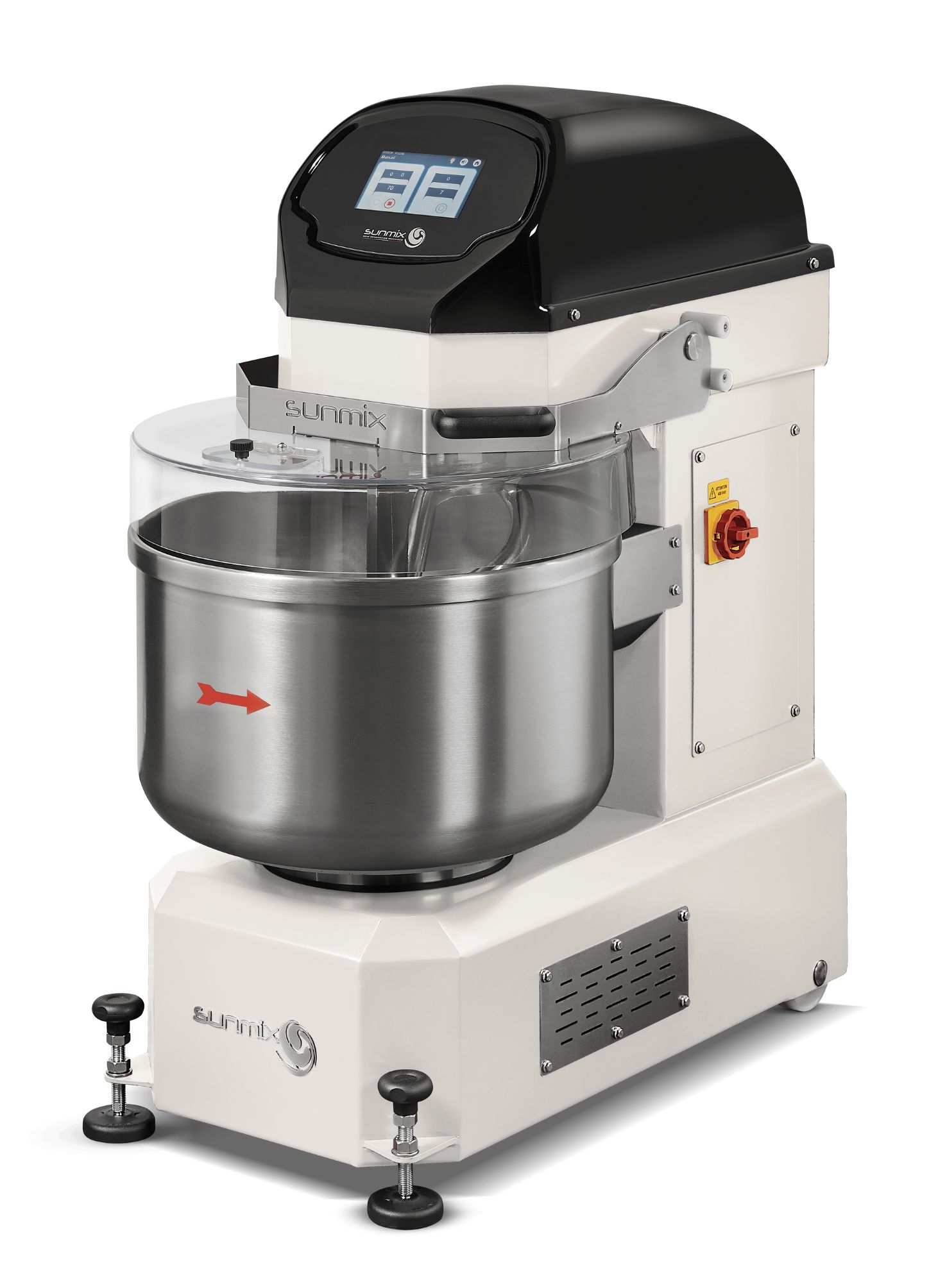 Mide la temperatura instantánea de la masa, manteniendola siempre bajo control. Es posible establecer la temperatura máxima que permite arrestar la amasadora al logor de dicha temperatura.